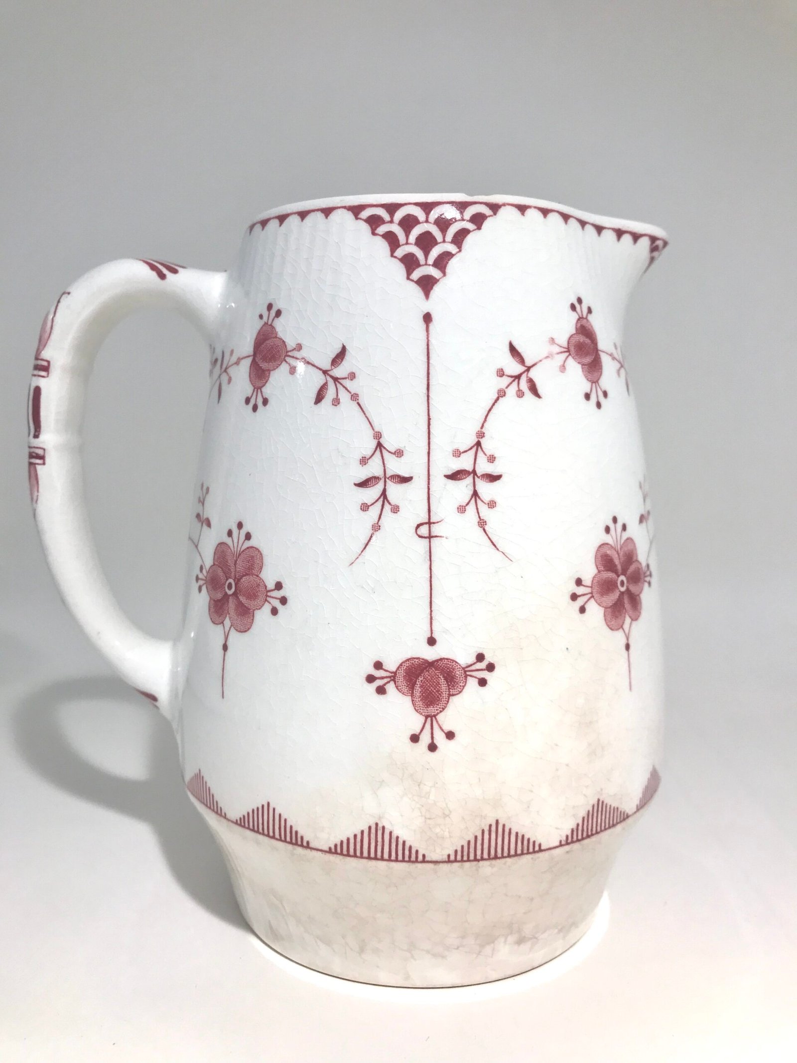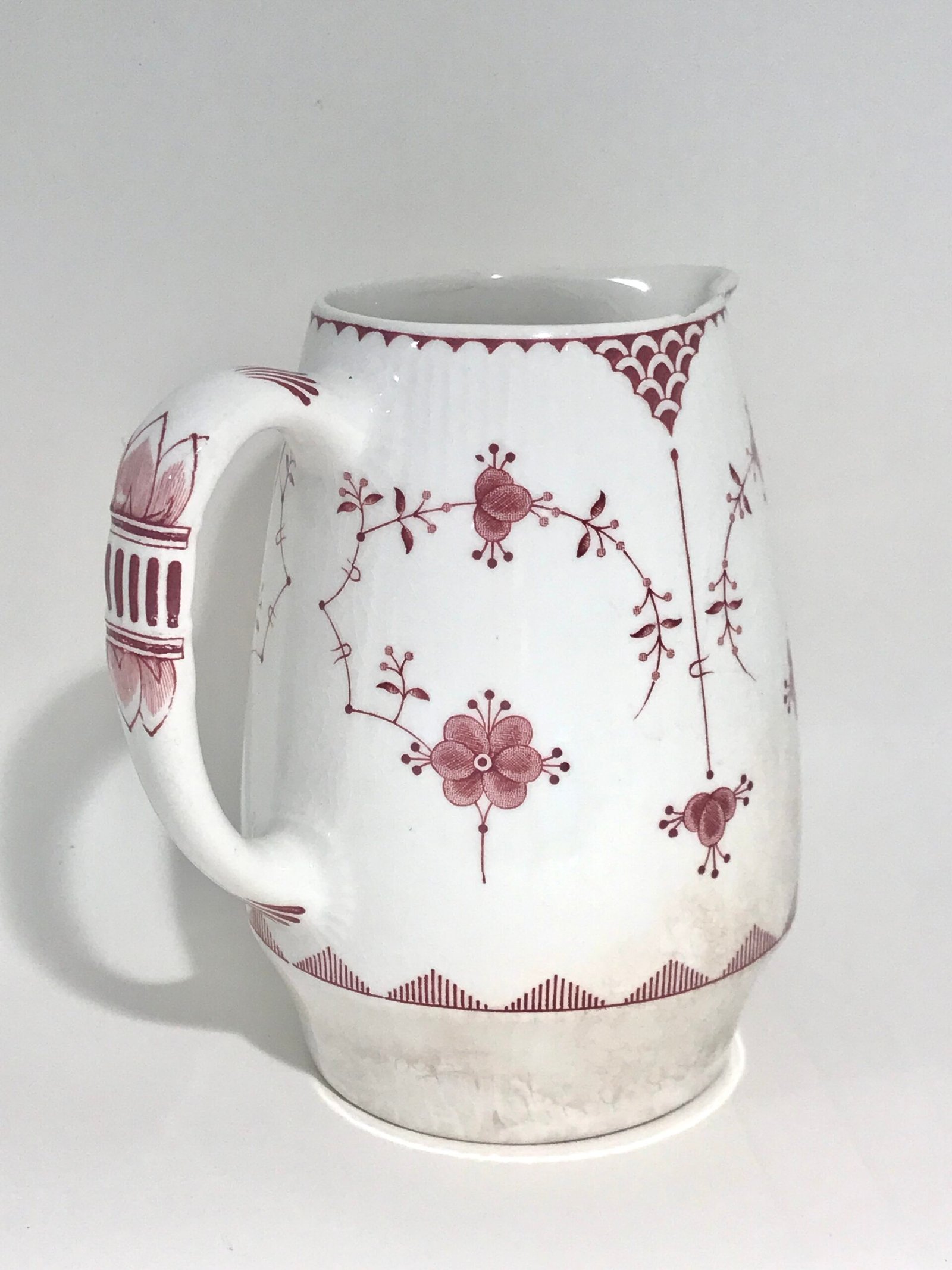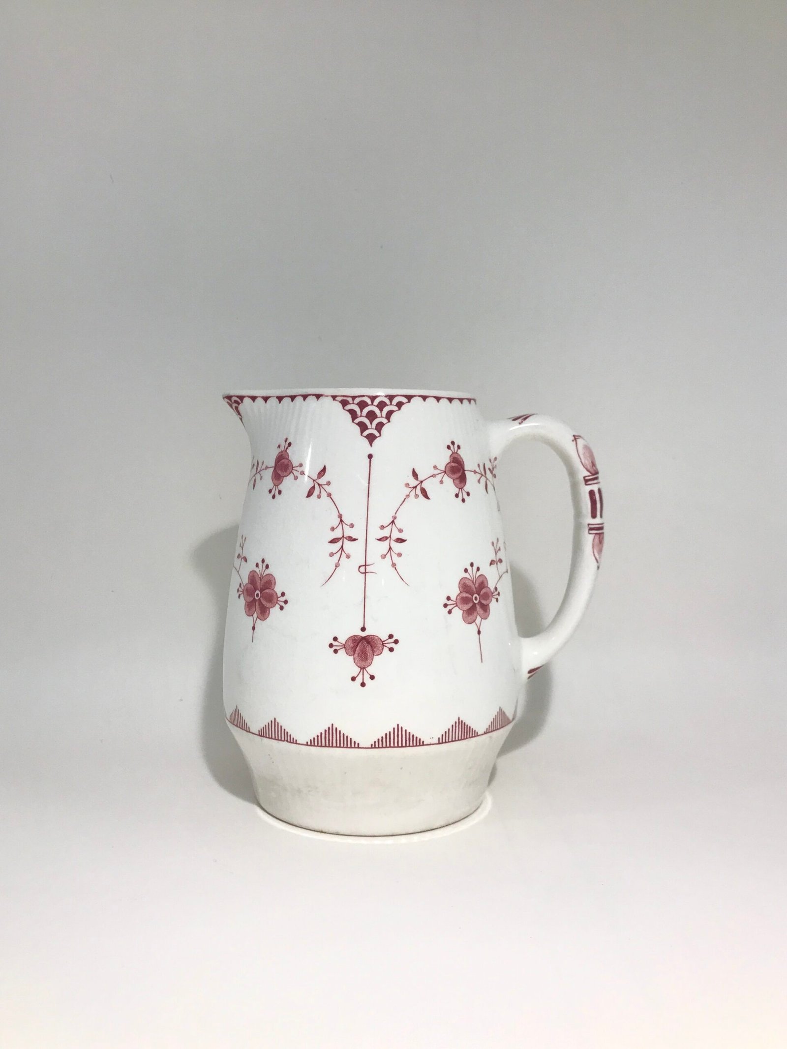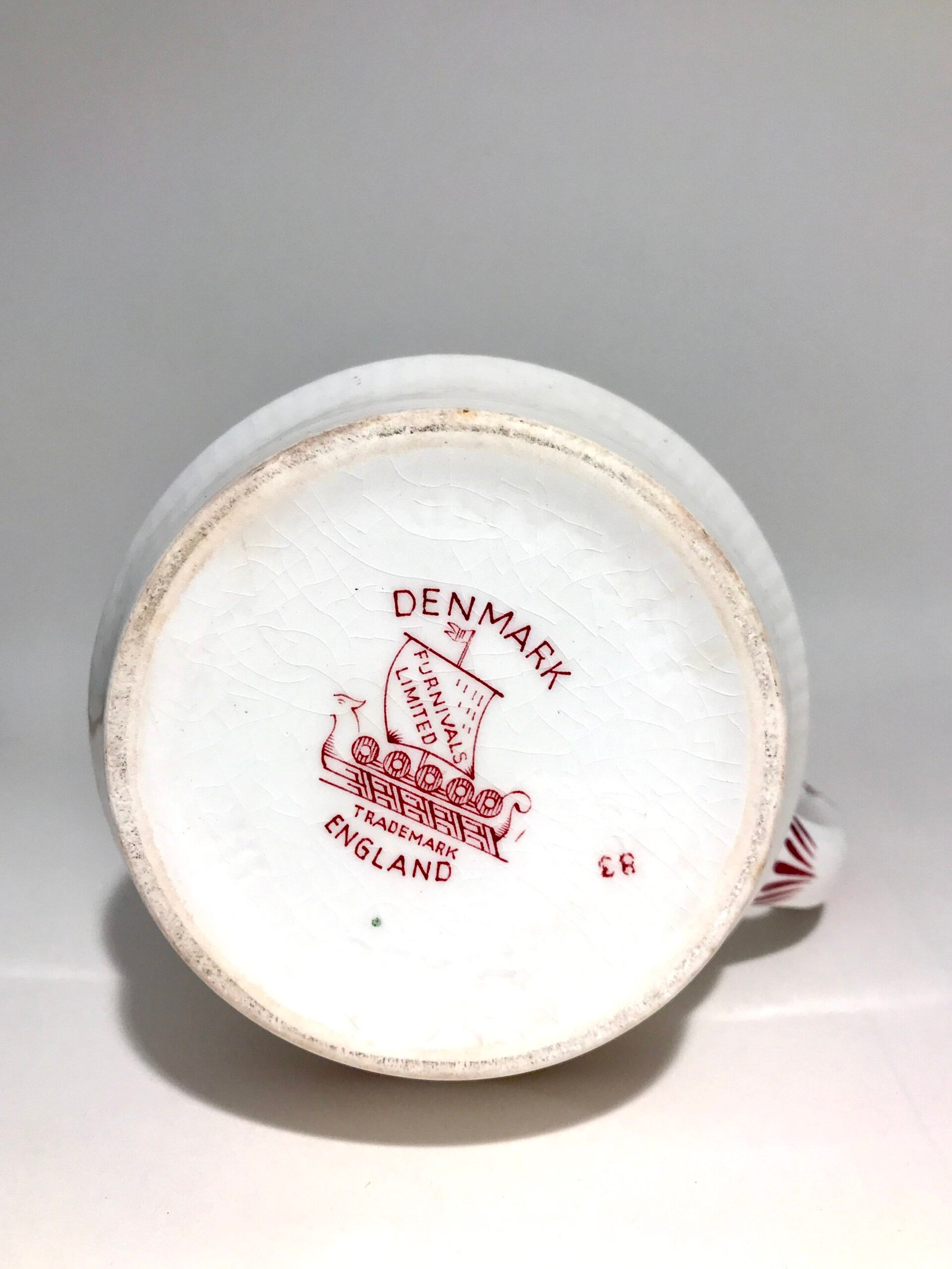 Manufacturer: Furnivals Pattern: Pink Denmark / Red Denmark Dimensions. Bottom diameter – 8 cm or 3.2 inches. Height – ~15 cm or ~6 inches.